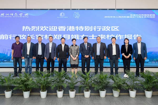 4月28日上午,香港特别行政区第五任行政长官林郑月娥女士到访我校,作专题报告并与师生代表互动交流。湖州市委常委、统战部部长潘友明,全国政协委员、香港浙江省同乡会联合会会长詹洪良,浙江省政协委员、香港浙江省同乡会联合会常务副会长、湖州旅港同乡会会长顾伟诚,浙江省政协委员、香港浙江省同乡会联合会副会长、香港嘉兴同乡会会长程奇,上海交通大学教授许泓,省委统战部港澳台处二级调研员章丰华,湖州市委统战部常务副部长吴焱国等陪同来访。我校党委书记金佩华,党委副书记陈永华,党委委员、组织部统战部部长劳士健,湖州中学副校长竺斌出席活动。我校师生代表和湖州中学文科创新班师生等150余人聆听报告。