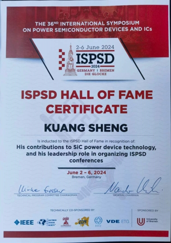 近日,第36届功率半导体器件和集成电路国际会议(International Symposium on Power Semiconductor Devices and ICs,ISPSD)在德国不来梅成功举办。我校副校长(主持行政日常工作)盛况教授因在“碳化硅功率器件方向的学术成就以及在ISPSD会议组织方面的贡献”入选ISPSD名人堂(Hall of Fame),成为继陈星弼院士后第二位获此殊荣的中国大陆学者。